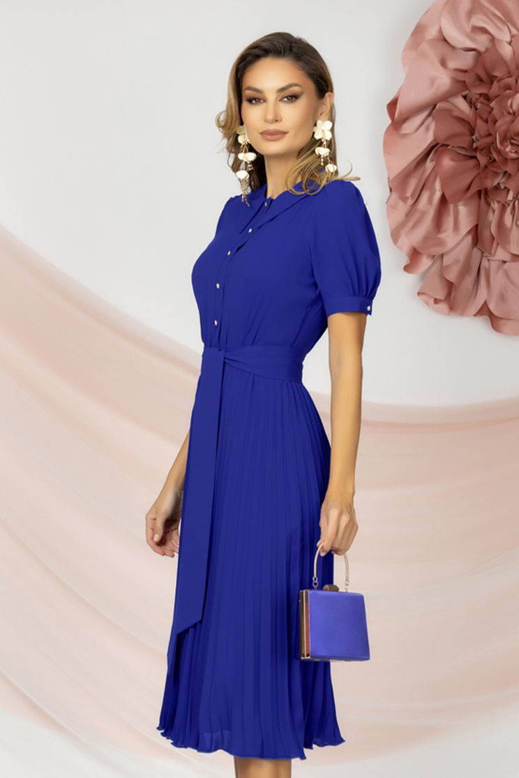 Kék rakott midi ruha, harang alakú gumirozott derékrésszel