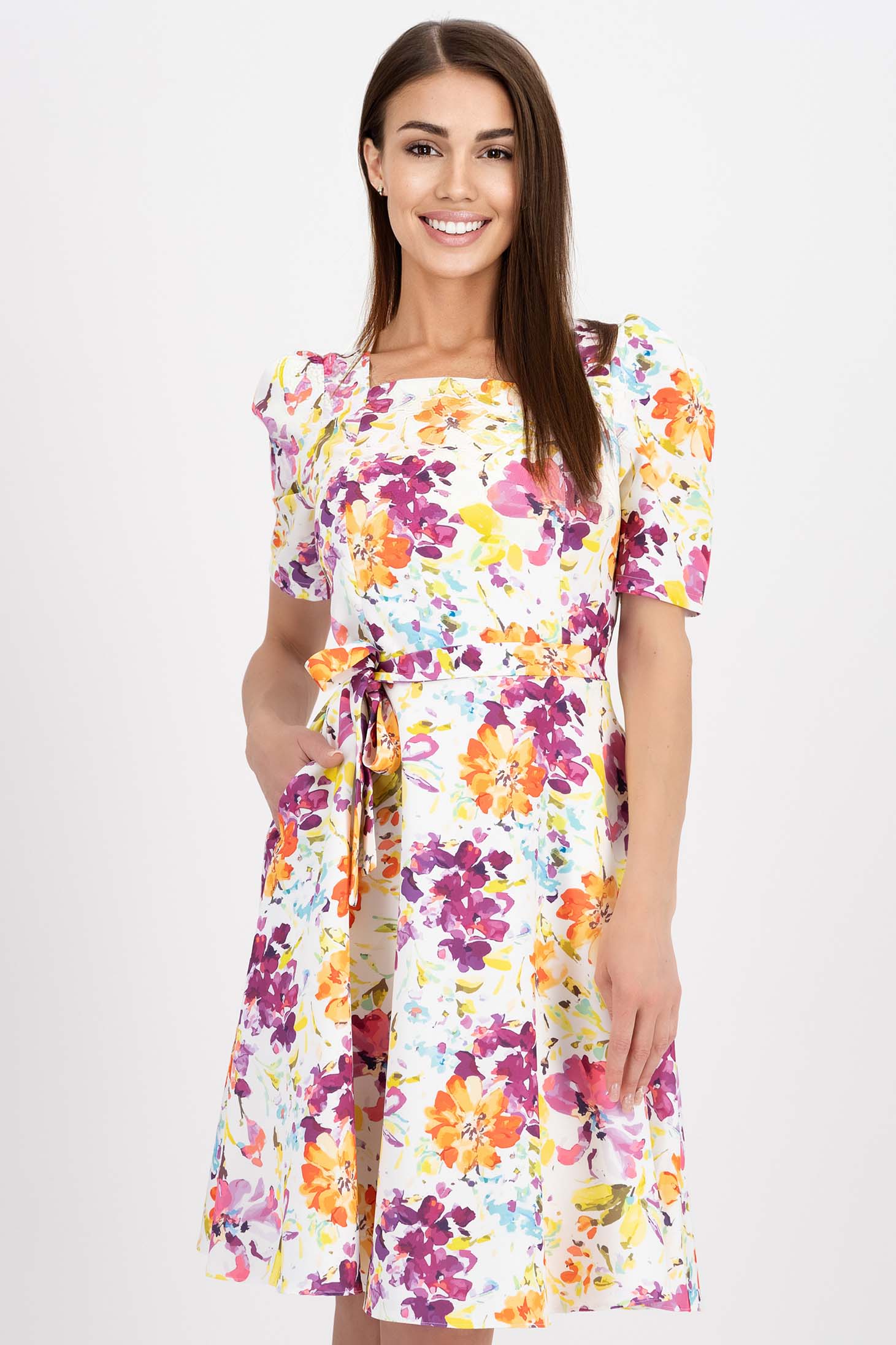 Virágmintás rugalmas szövet harang ruha, térdigérő
